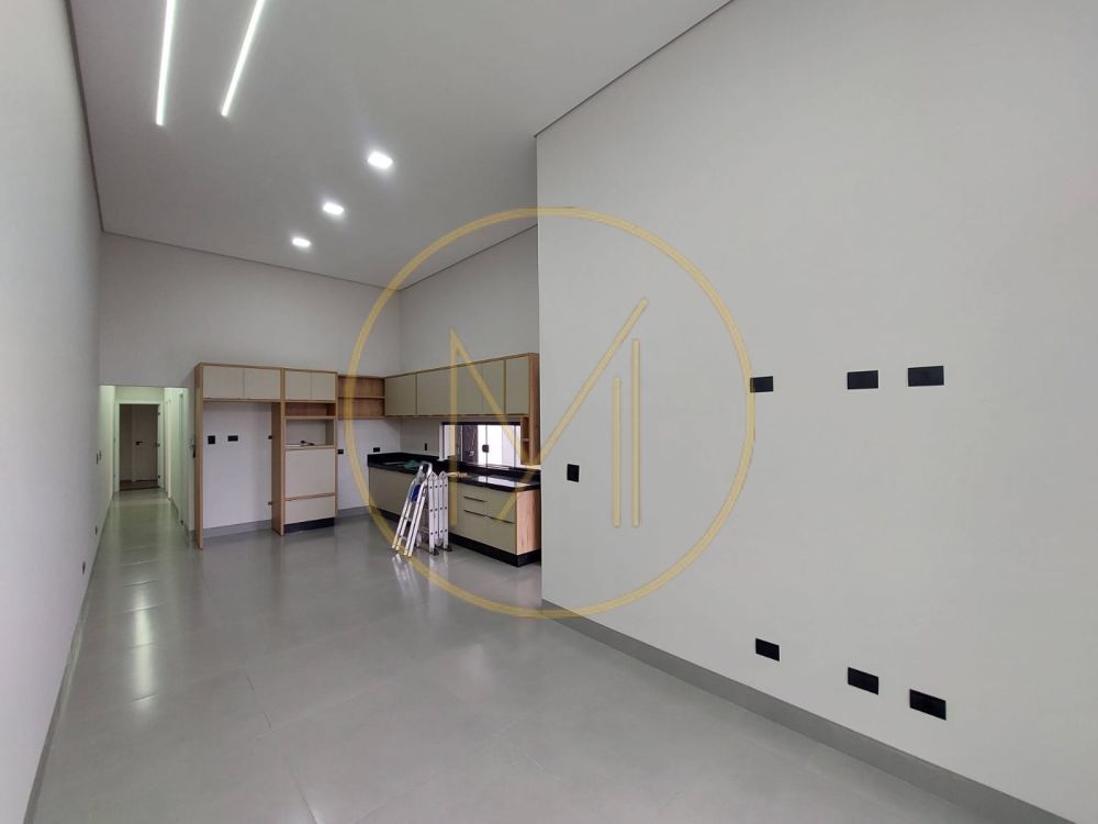 A área social conta com uma ampla sala com pé-direito alto, proporcionando mais iluminação natural e sofisticação ao ambiente, integrada a uma cozinha americana planejada, já equipada com móveis sob medida e lustres, garantindo praticidade e elegância.